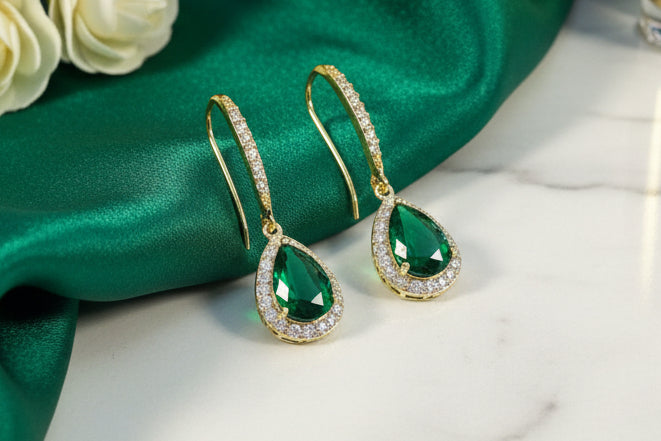 Boucles d'Oreilles Orientales Dorées et Vertes Émeraudes - Cérémonie du Henné