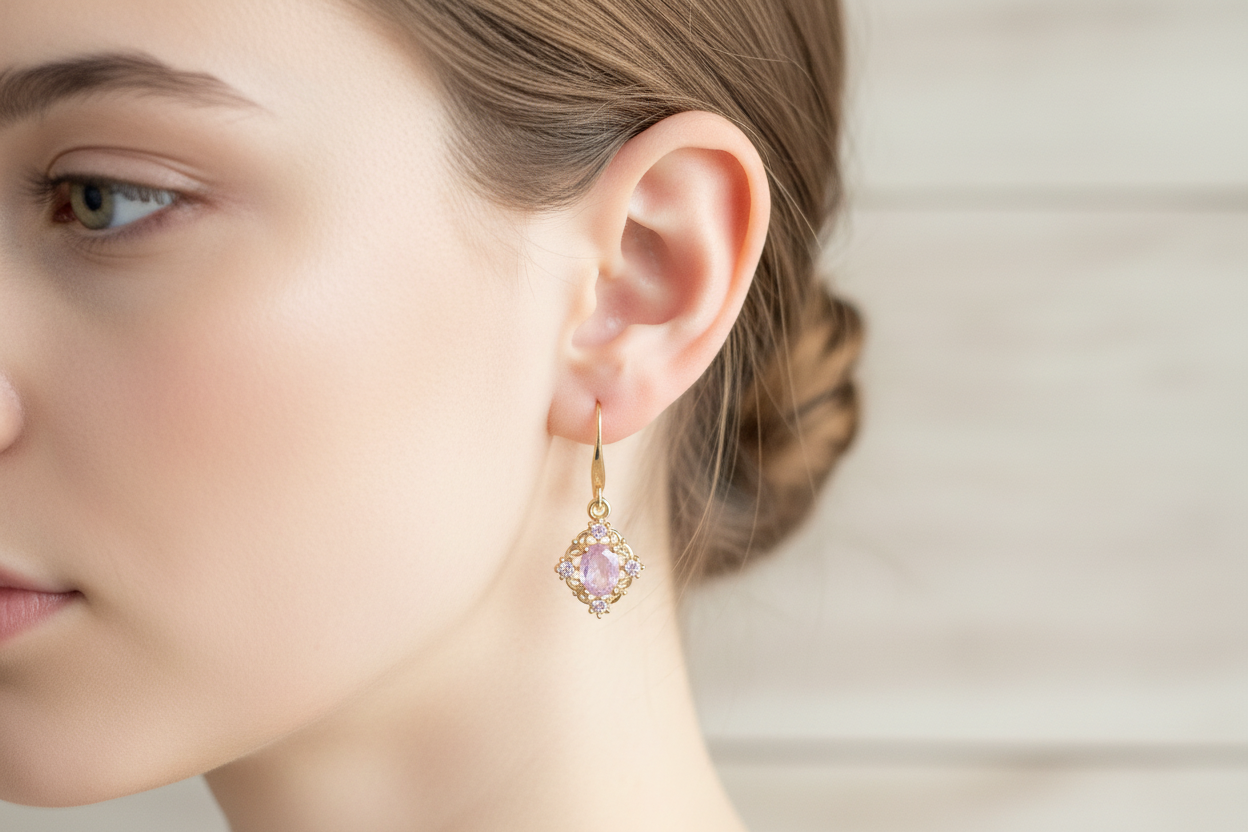 Boucles d'Oreilles Orientales Rose Poudrée et Améthyste - Collection Luxury